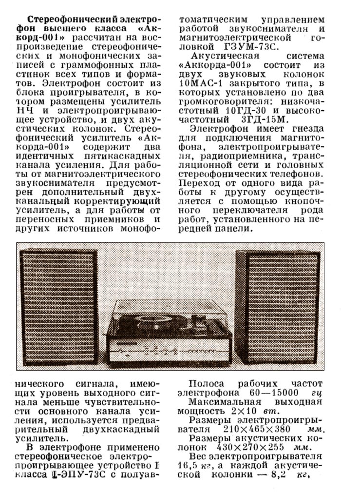 Н.В.Анисимова. Описание электрофона "Аккорд-001-С" в