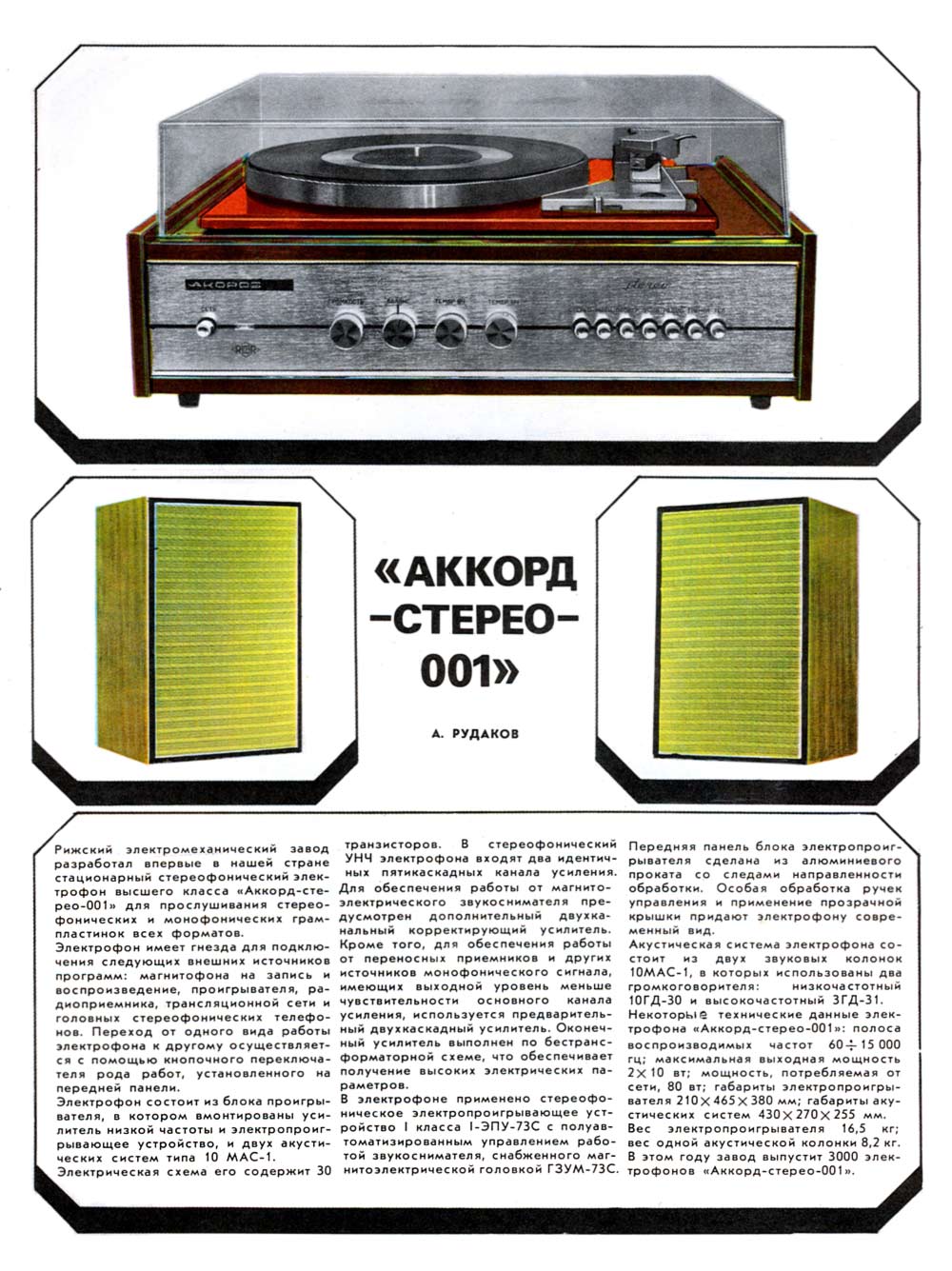 Стереофонический электрофон ''Аккорд-001 стерео'' один из первых электрофонов