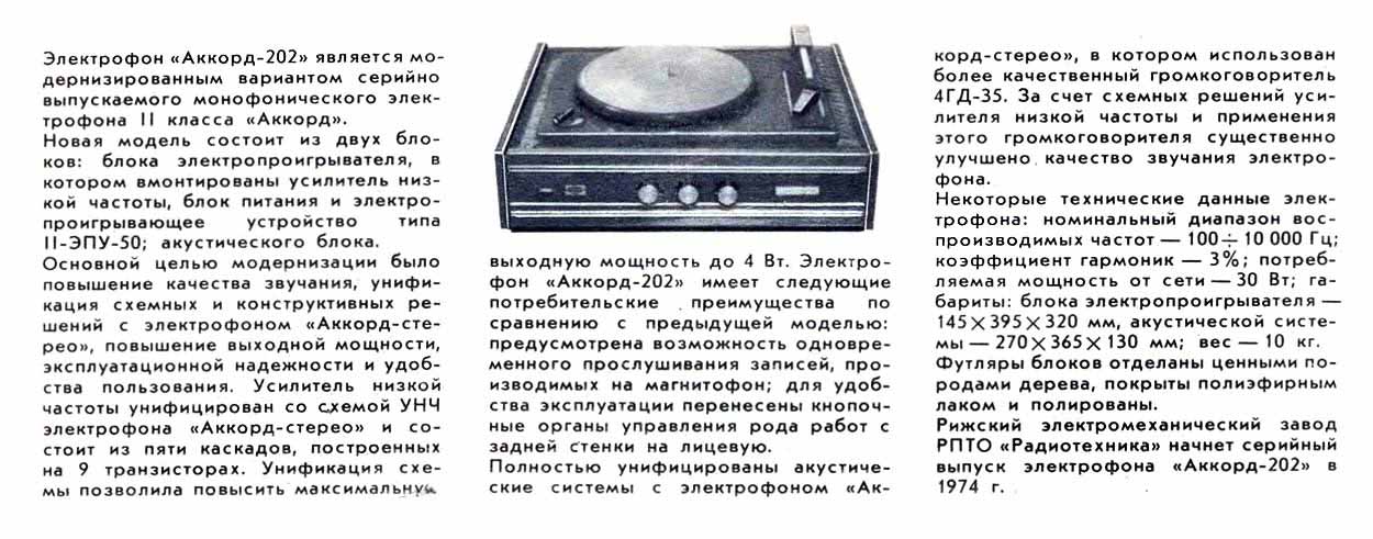 транзисторный "Аккорд-202" подготовил к выпуску с 1974 года Рижский ЭМЗ