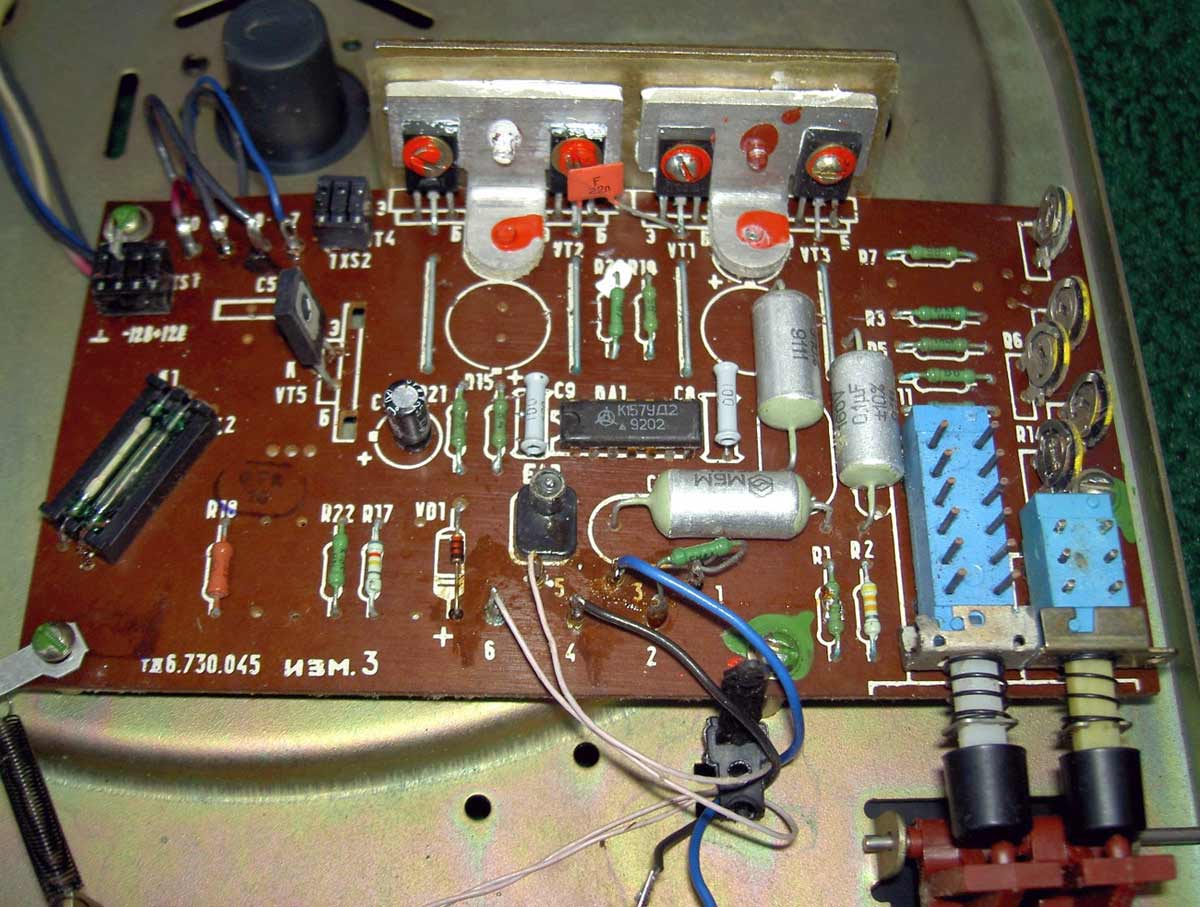 на скорости вращения диска 33 и 45 об/мин. В электрофоне применено электропроигрывающее