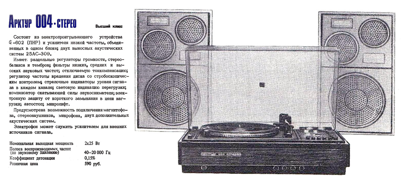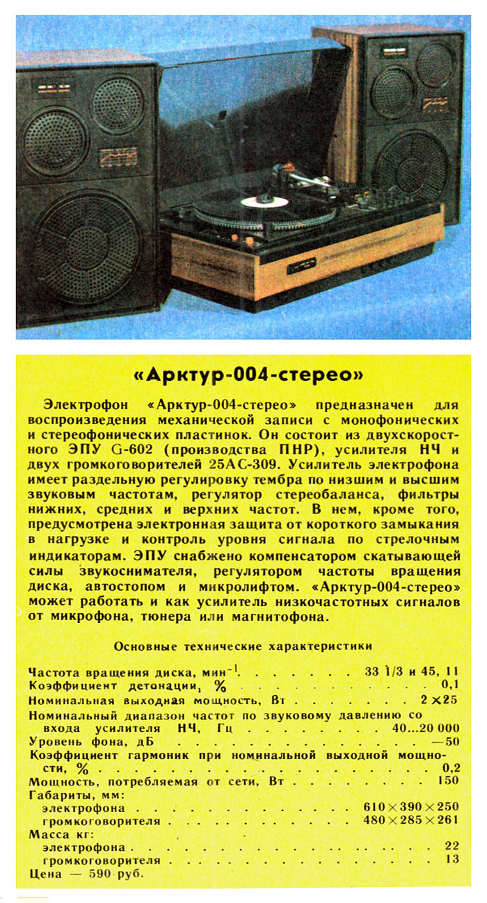 транзисторный электрофон "Арктур-004-стерео" с 1981 года выпускал Бердский