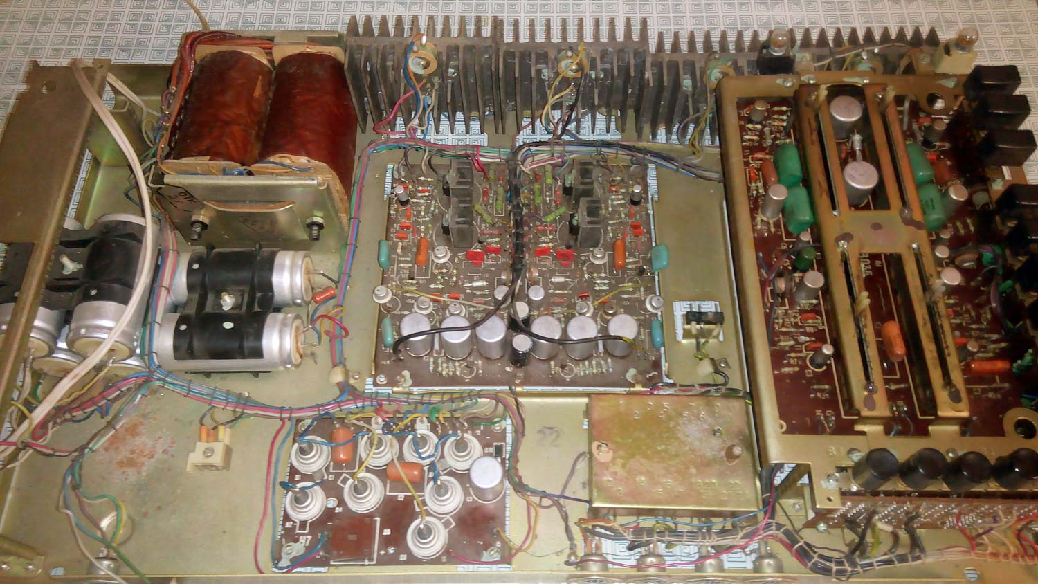 по звуковому давлению 40...20000 Гц. Уровень фона -50 дБ. КНИ 0,2%. Потребляемая