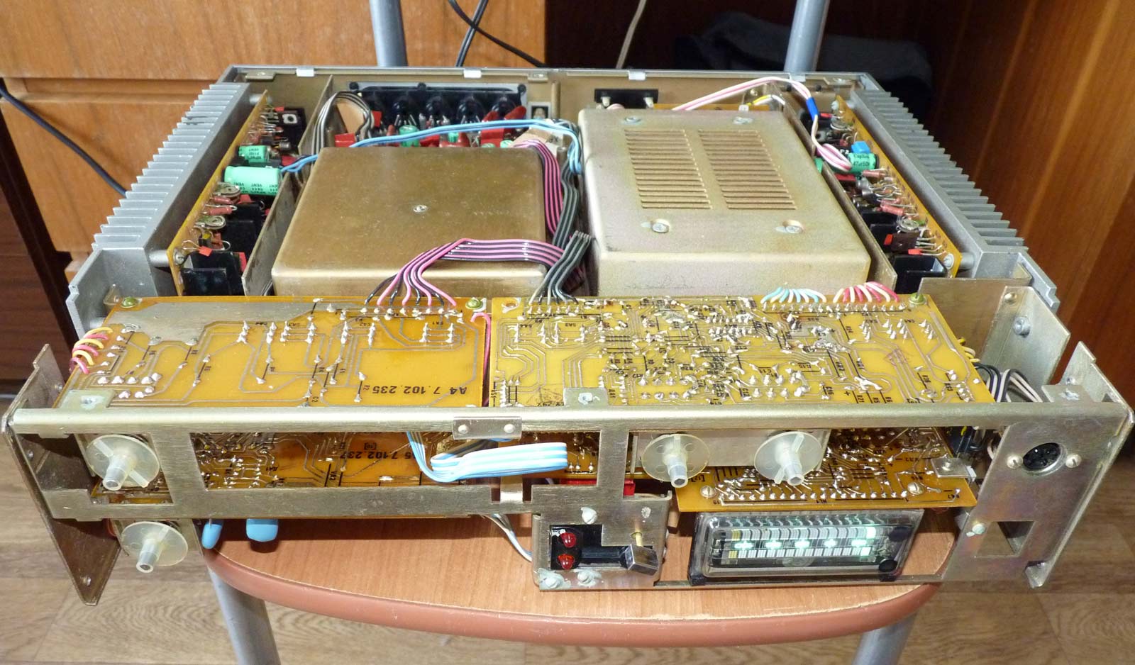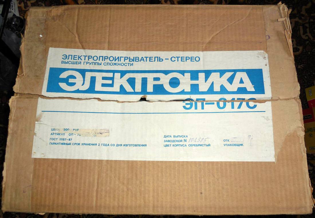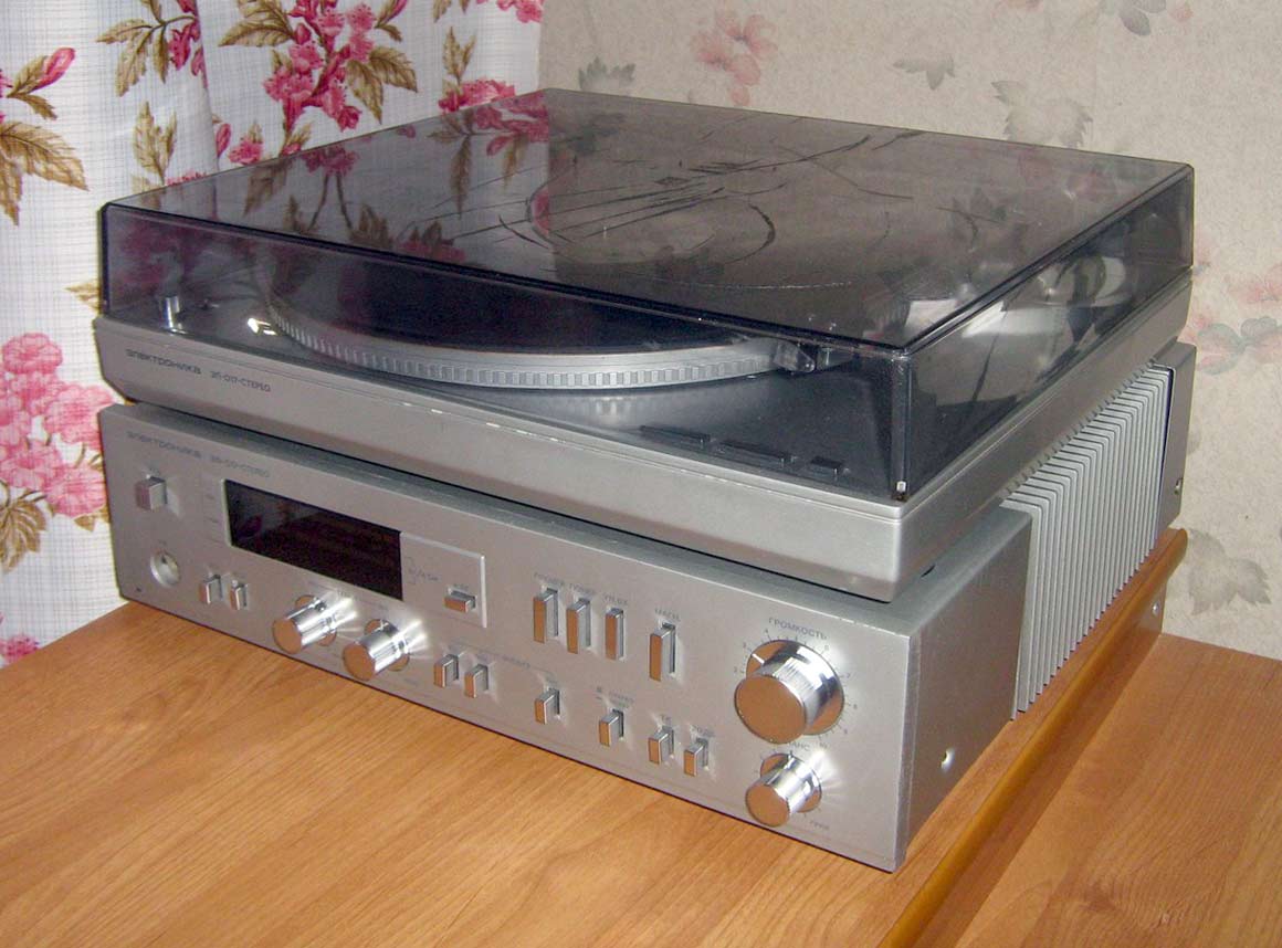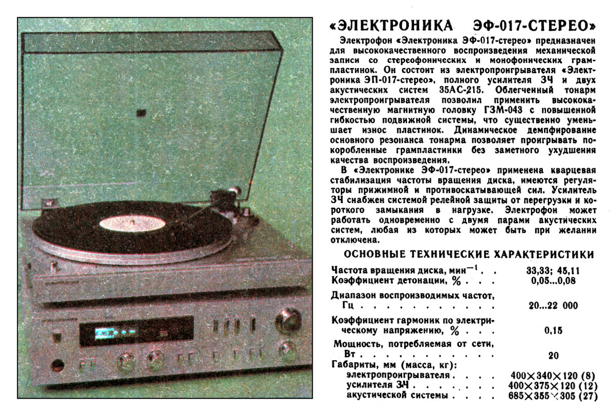 состоит из электропроигрывателя ''Электроника ЭП-017С'', полного усилителя
