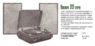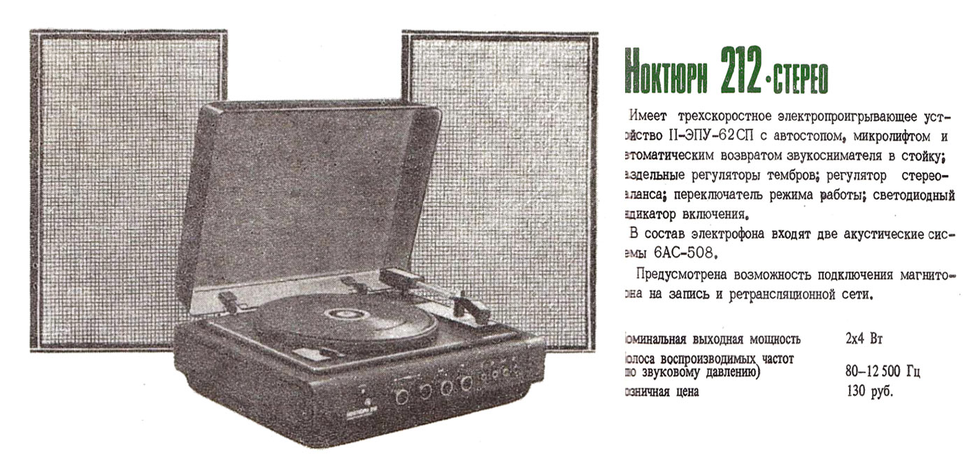''Ноктюрн-212 стерео'' состоит из 3-х скоростного 78, 45, 33 об/мин ЭПУ