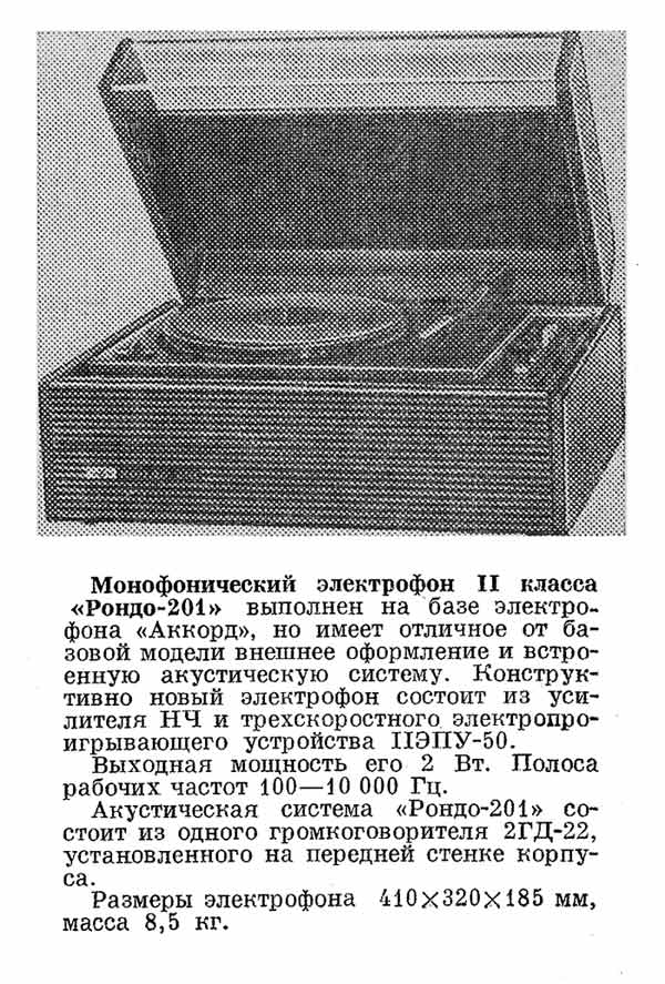 "Рондо-201" с 1972 года выпускал Казанский ЭТЗ. Выполнен на базе электрофона