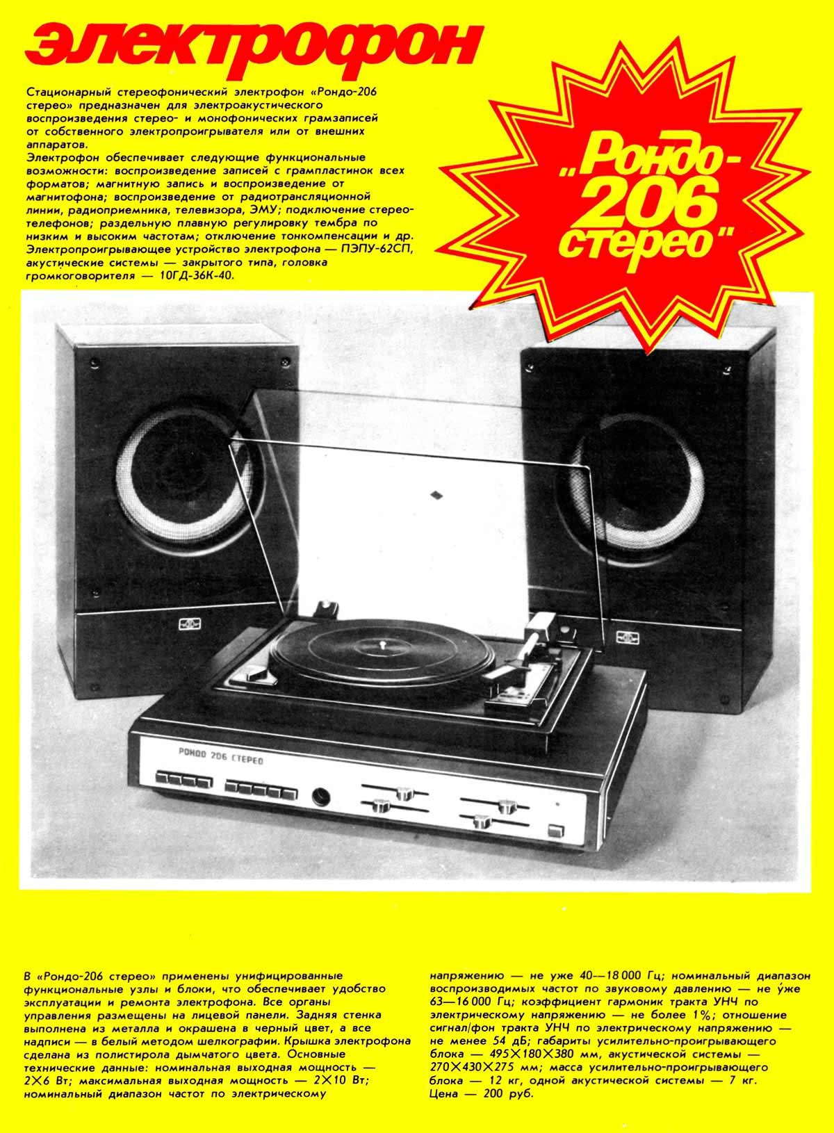 "Рондо-206-стерео" с 1985 года выпускал Казанский ЭТЗ. Служит для прослушивания