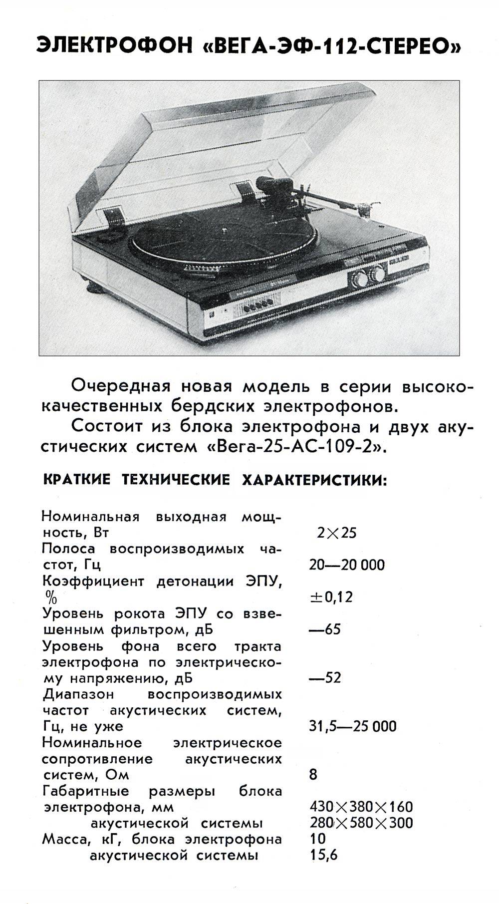 сетевой транзисторный "Вега ЭФ-112-стерео" с 1985 года выпускал Бердский