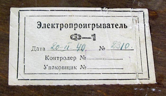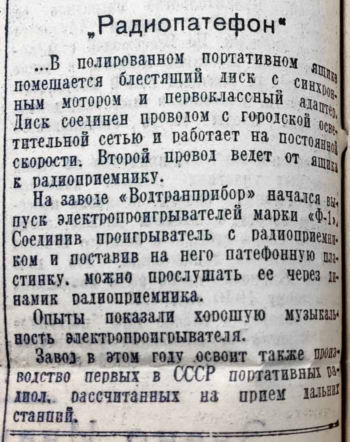"Водтрансприбор"). Электропроигрыватель "Ф-1" предназначен для прослушивания