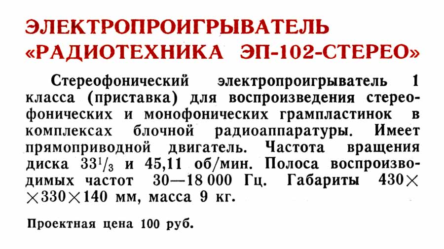 в 1985 году в свою очередь на базе ЭП "Радиотехника ЭП-101-стерео" с некоторыми