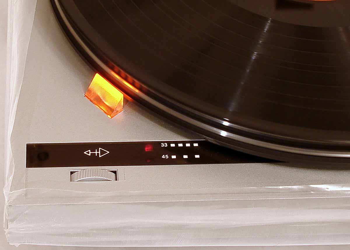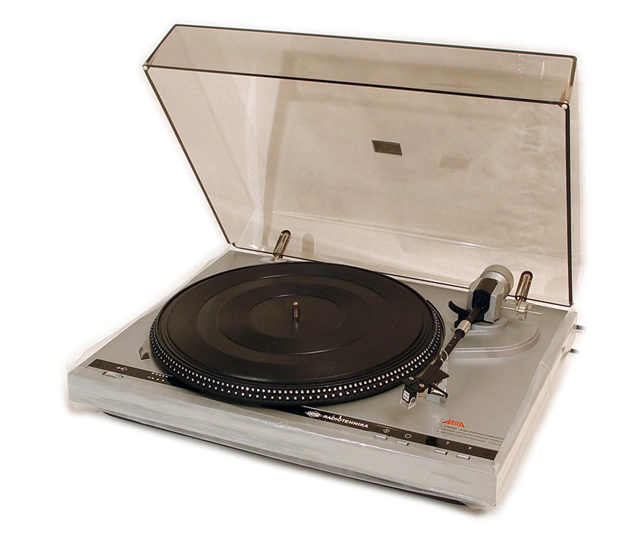 с закрытой пылезащитной крышкой. Частота вращения диска ЭПУ 33/45 об/мин.