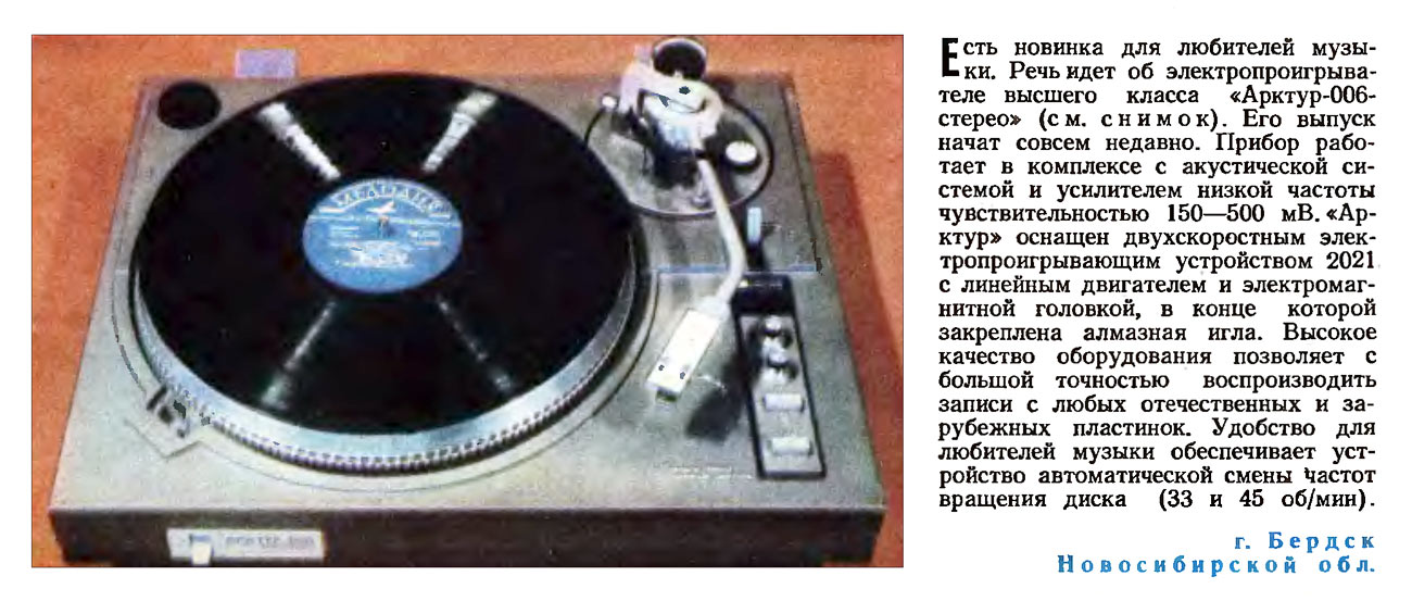 "Арктур-006-стерео" с 1983 года выпускал Бердский радиозавод. ЭП высшего