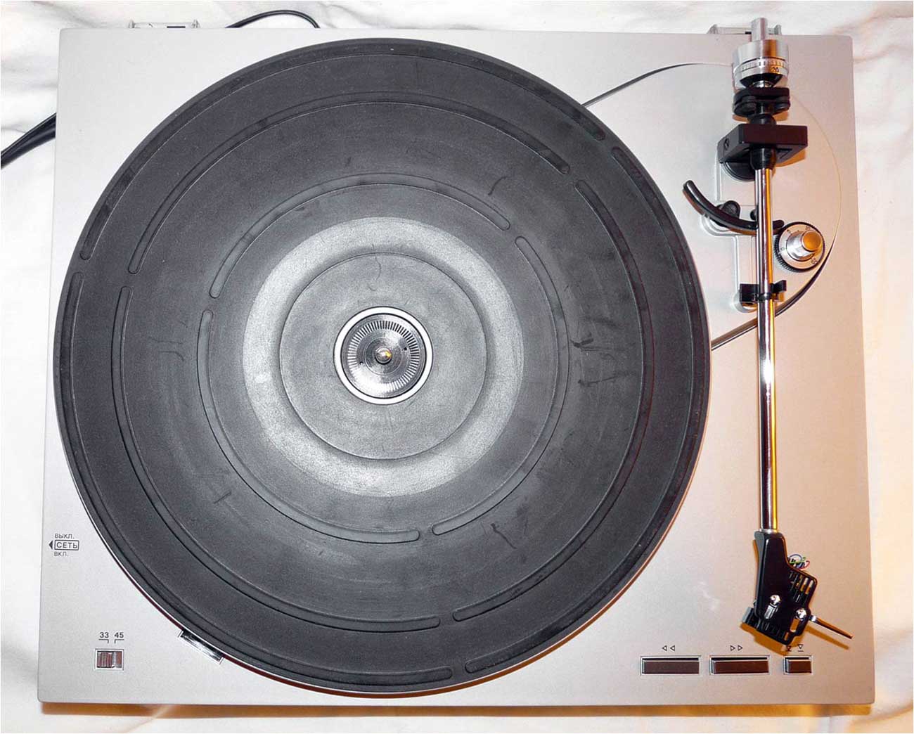 звукоснимателем и всеми режимами работ. Скоростей вращения диска две 33,33