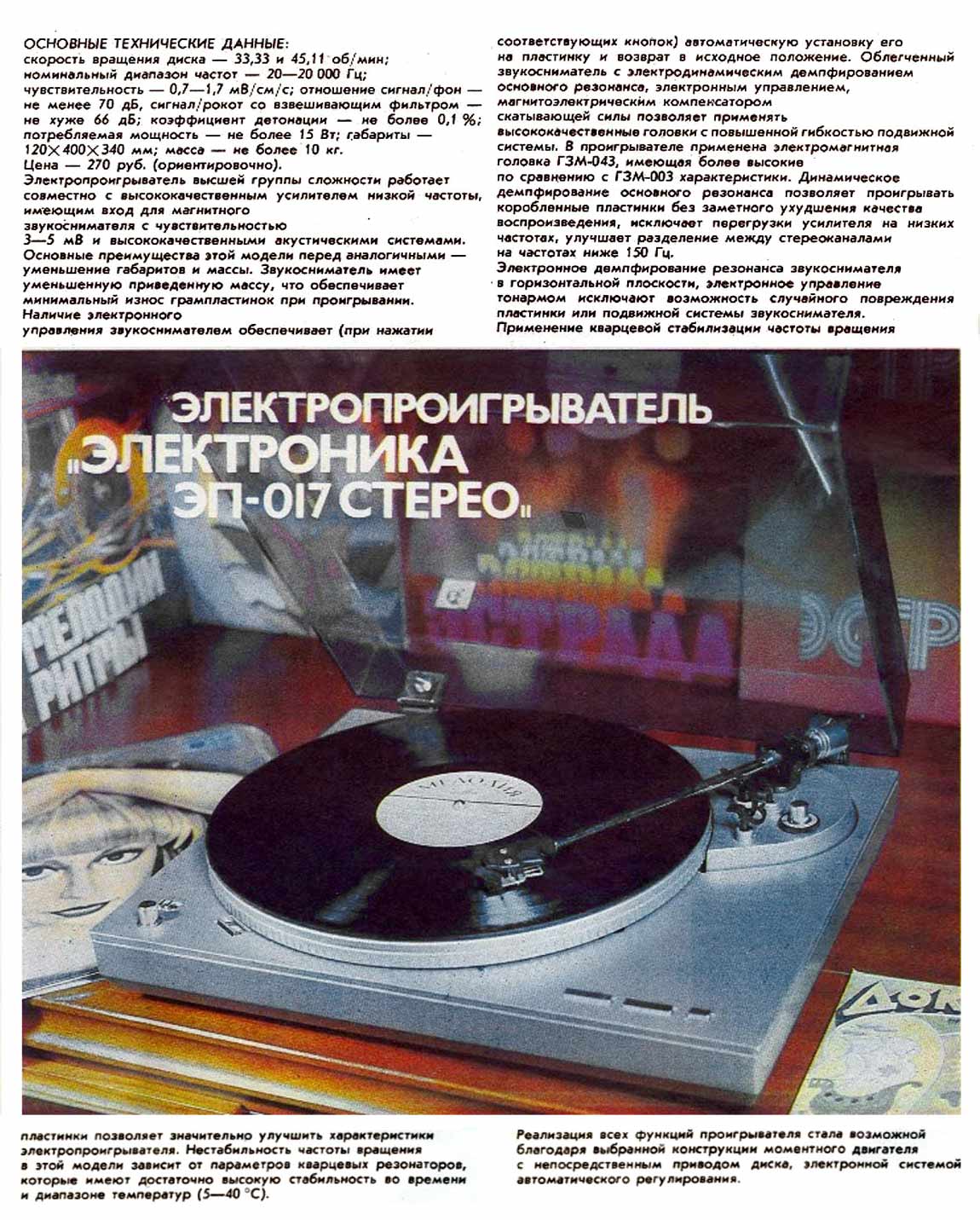 "Элекон". ЭП (первые выпуски "Электроника-017-стерео") предназначен для