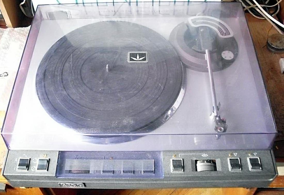 от сети 8 Вт. Габариты электропроигрывателя 480х408х127 мм. Его масса 15