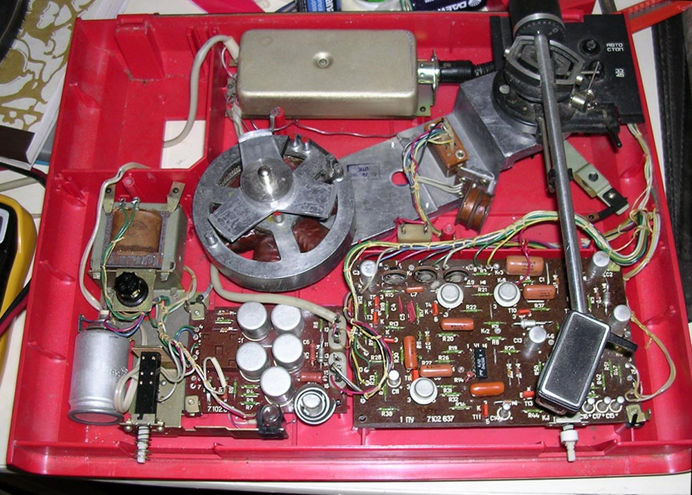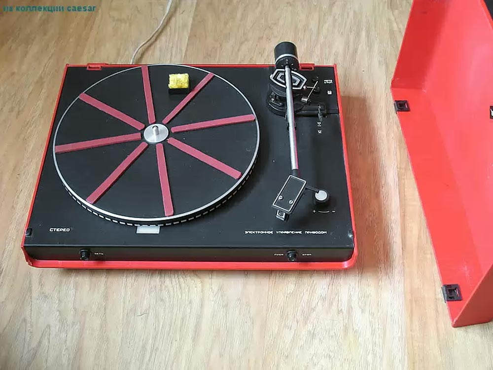 Электропроигрыватель имеет две скорости вращения диска: 33,33 и 45,11 об/мин.