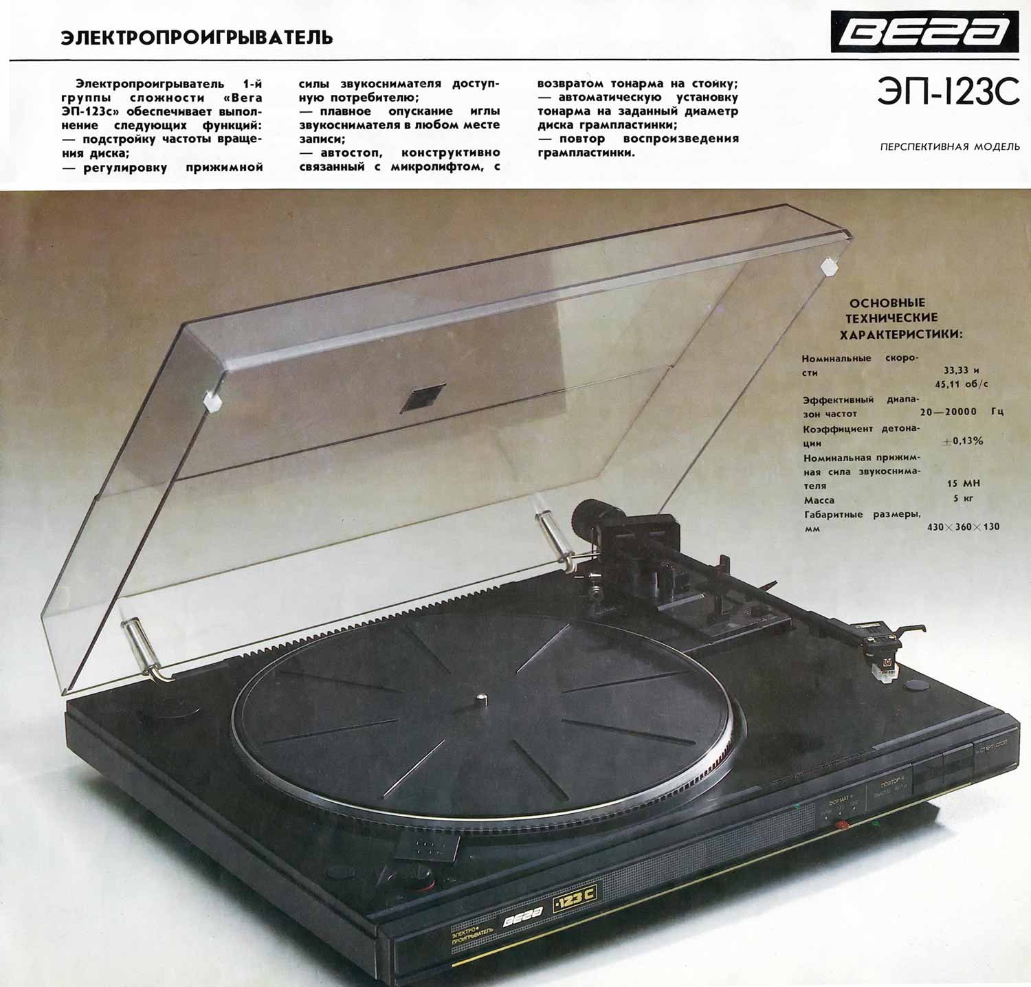 "Вега ЭП-123-стерео" разработан в 1990 году и опытно выпущен Бердским радиозаводом.