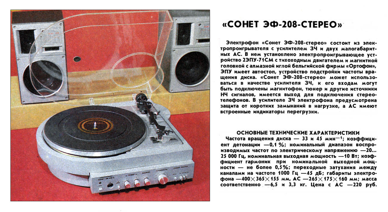 аппаратуре, например в электрофонах "Ария" и "Сонет". Некоторые