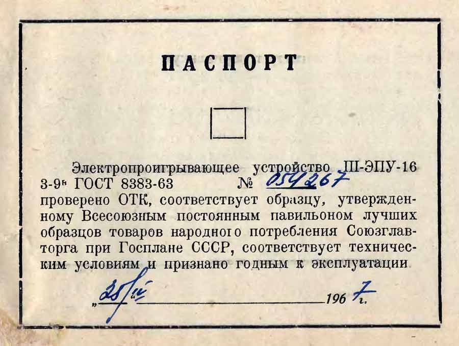 устройство третьего класса "III-ЭПУ-16-3-9" производилось с 1965 года Челябинским
