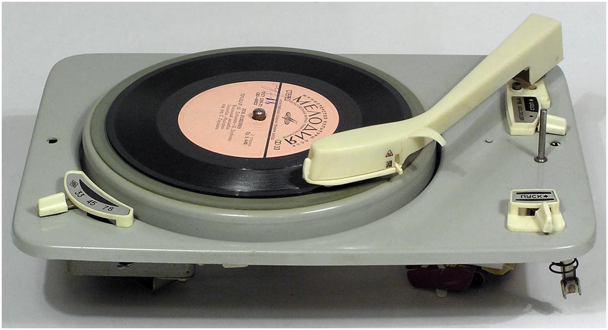имеет три скорости вращения диска: 33, 45, 78 об/мин. В звукоснимателе
