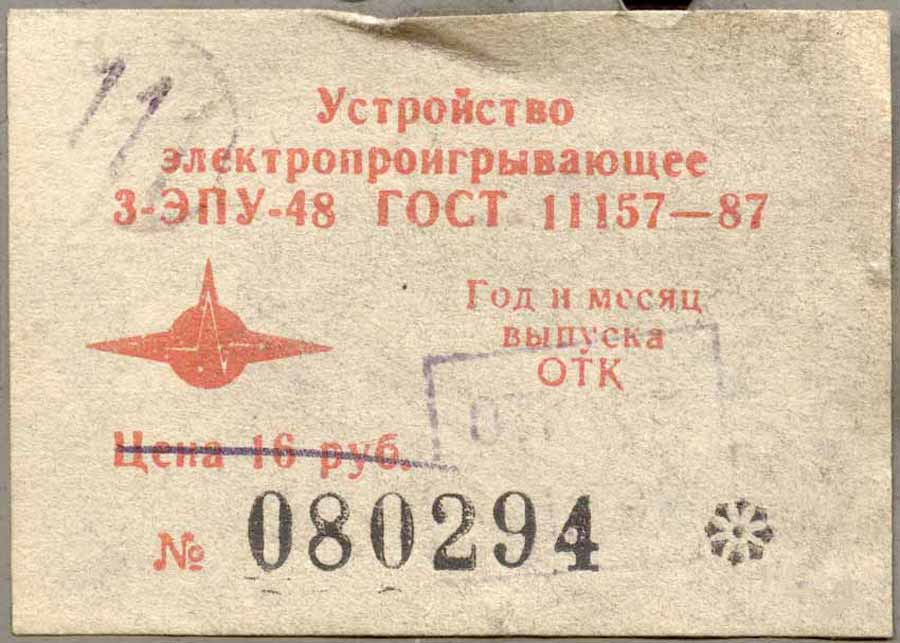 электропроигрывающее устройство 3-й группы сложности "3-ЭПУ-48" выпускалось