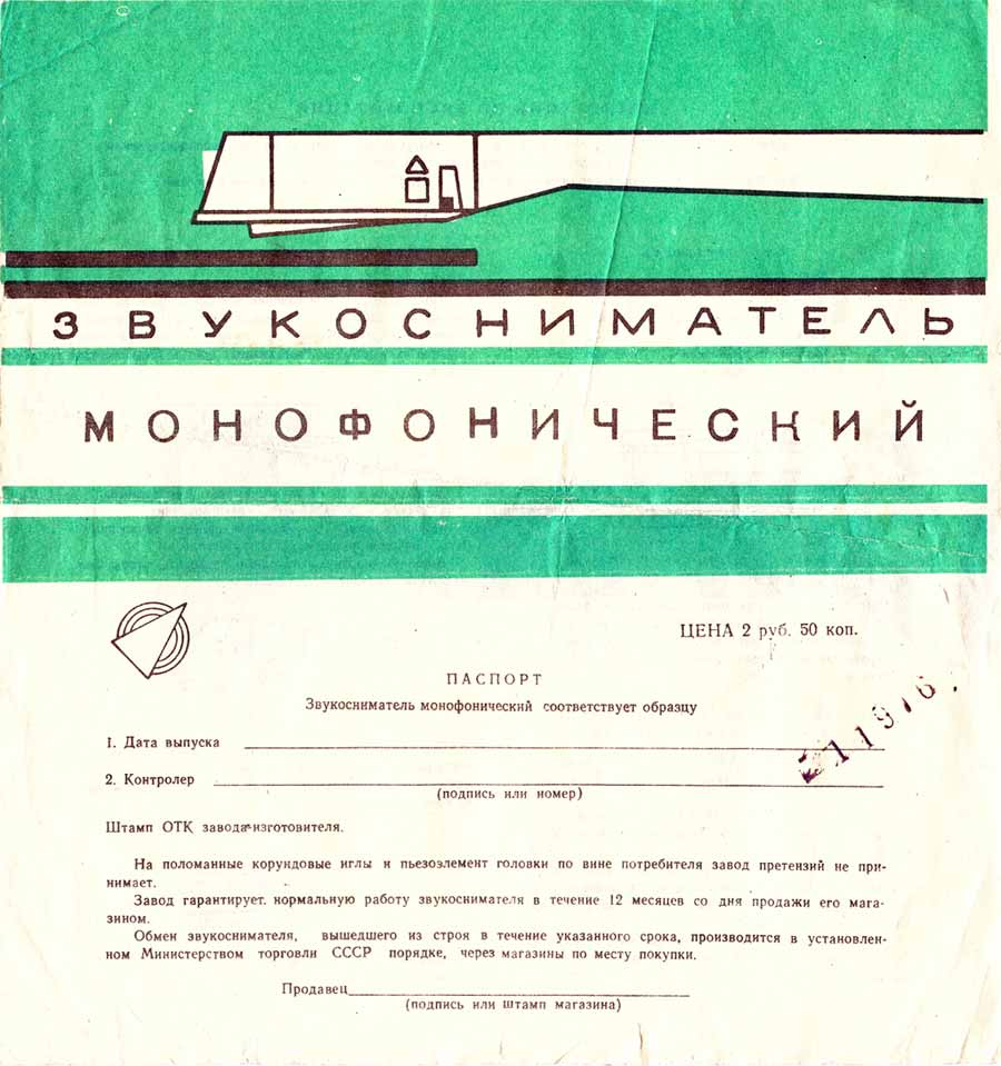 заводом (НПО "Луч). Головка предназначена для электрофонов,