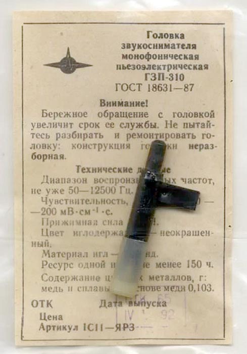 Головка звукоснимателя монофоническая пьезоэлектрическая "ГЗП-310" выпускалась предположительно с 1988 года Ярославским радиозаводом. ГОСТ 18631-87.