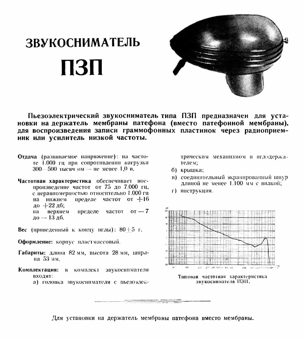 Пьезоэлектрический звукосниматель "ПЗП" выпускался возможно с 1937 года. Справочник "Радиовещательная аппаратура" выпуск № 2 за 1951 год.