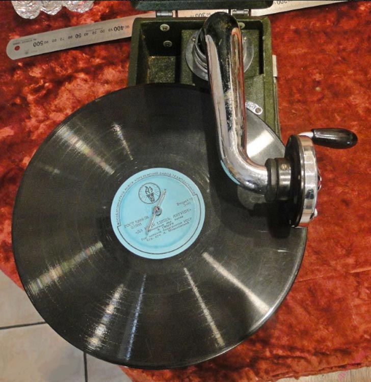 пластинок 78 об/мин. Диск, тонарм, головка звукоснимателя съёмные, закреплены