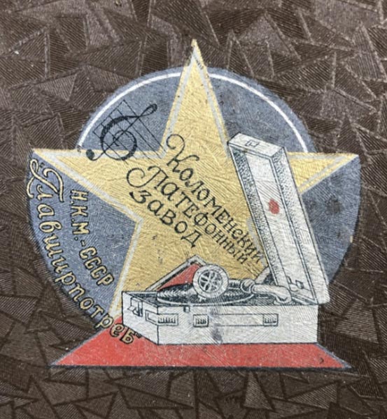 с надписью на эмблеме "Н.К.М. СССР Главширпотреб Коломенский патефонный