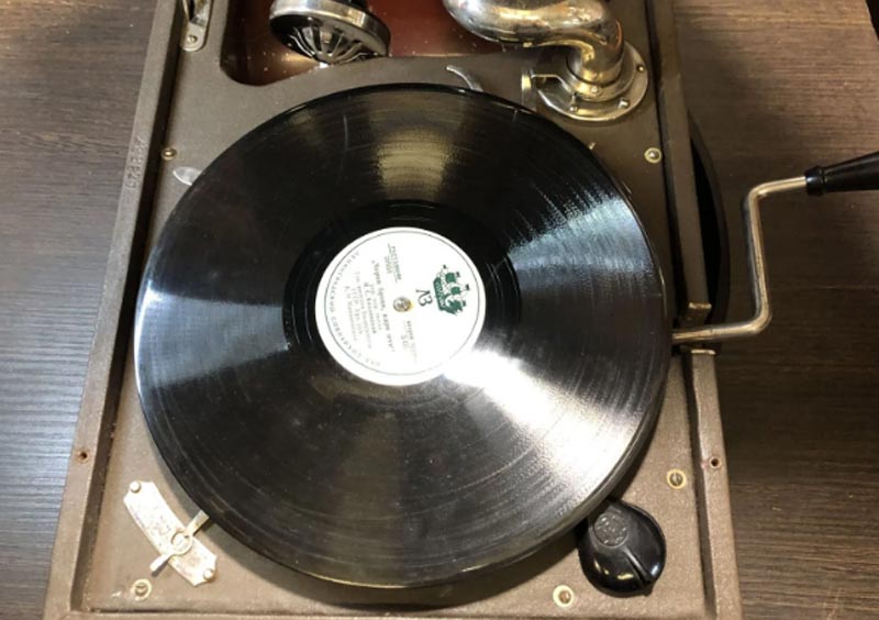 стороне крышки патефона появилось крепление для установки патефонных пластин.