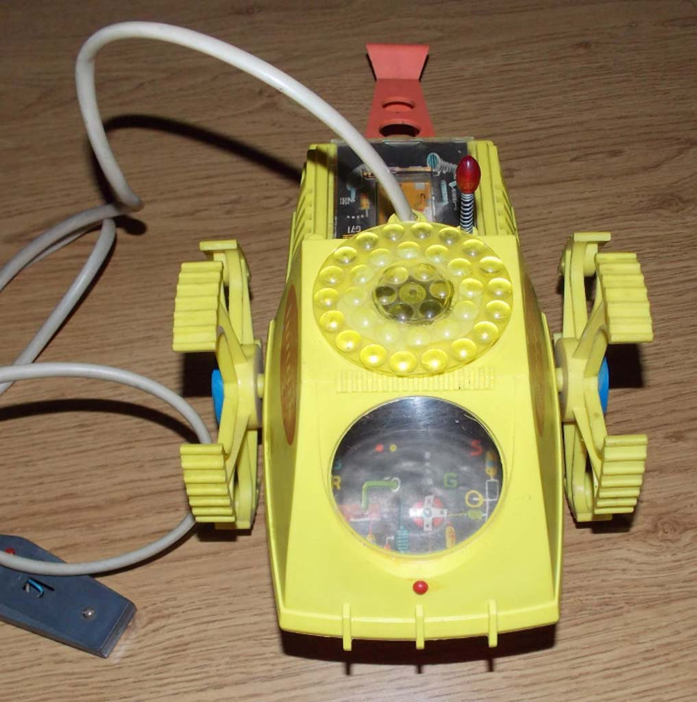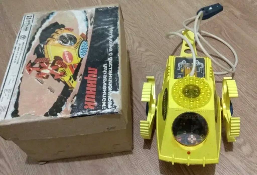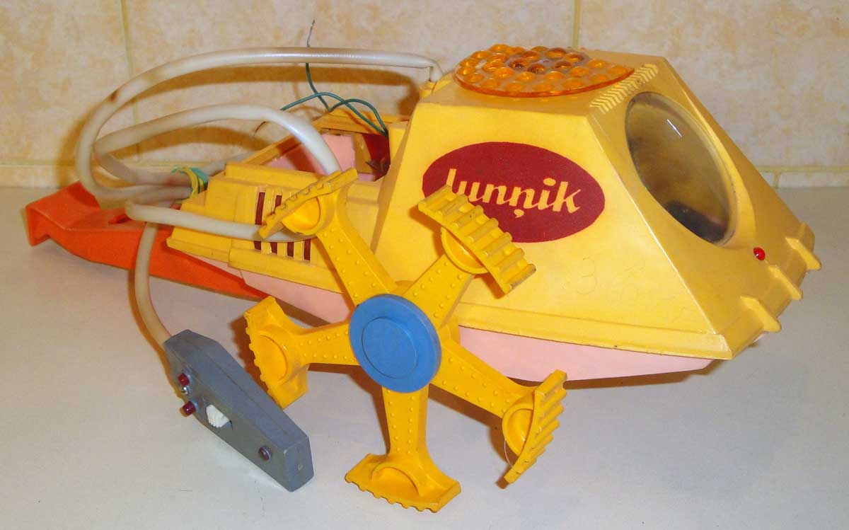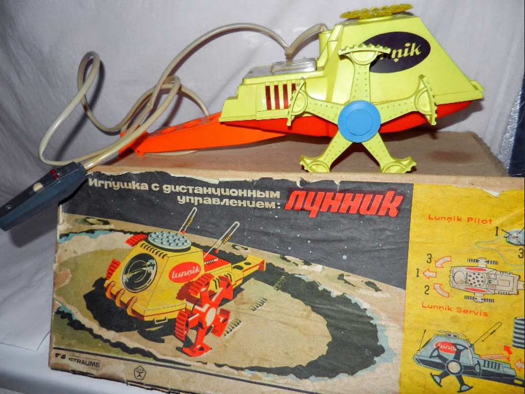 Электронно-механическая игрушка "Лунник" производилась с 1971 года Рижским заводом "Страуме". Игрушка может поворачивать вправо, влево и останавливаться, мигает тремя лампочками, имеет пульт ДУ.