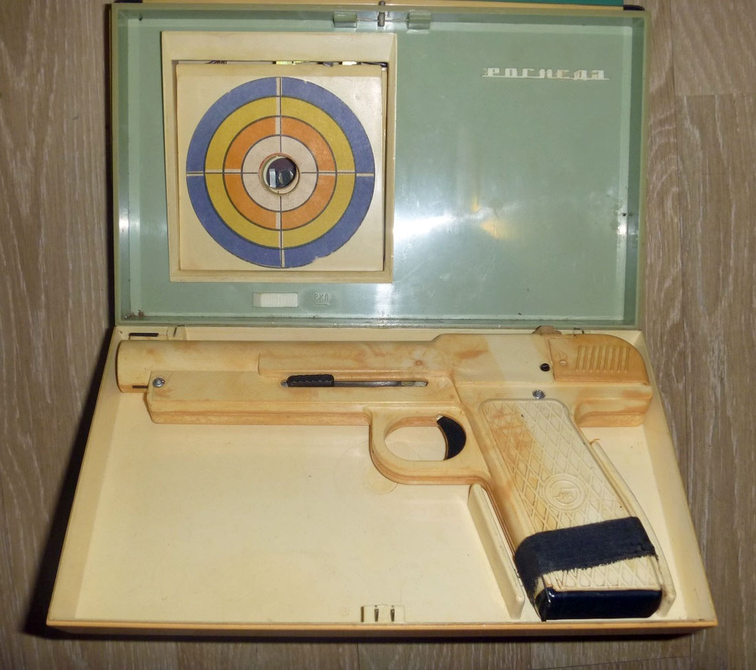 Световой тир "Рогнеда" выпускался возможно с 1982 года. Пистолет даёт короткую световую вспышку. При её попадании на фотоэлемент, с помощью схемы срабатывает реле, сбрасывая одну из 10 мишеней.