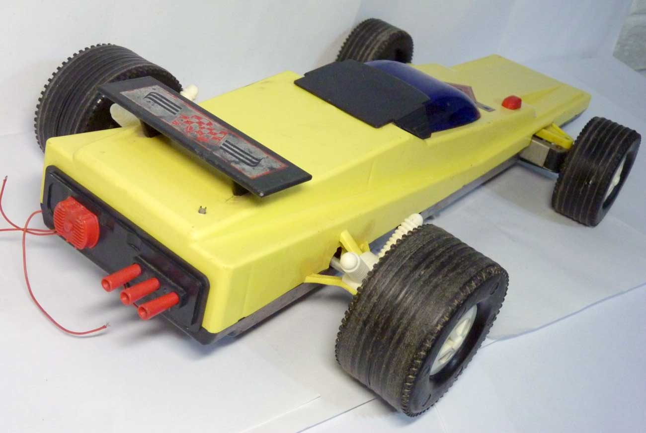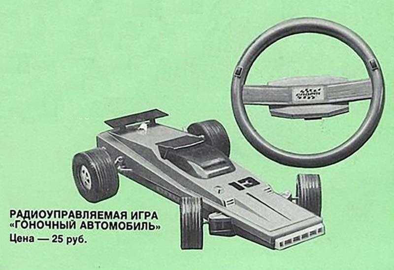 Радиоуправляемая игрушка "Гоночный автомобиль" Спорт выпускалась с 1991 года Псковским заводом радиодеталей в СССР. Внешне похожа на болид Формулы-1. Габариты 50х27х10 см.