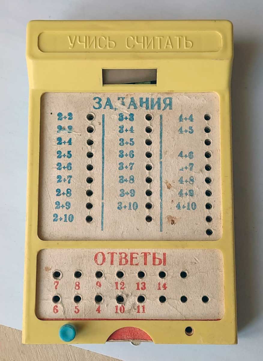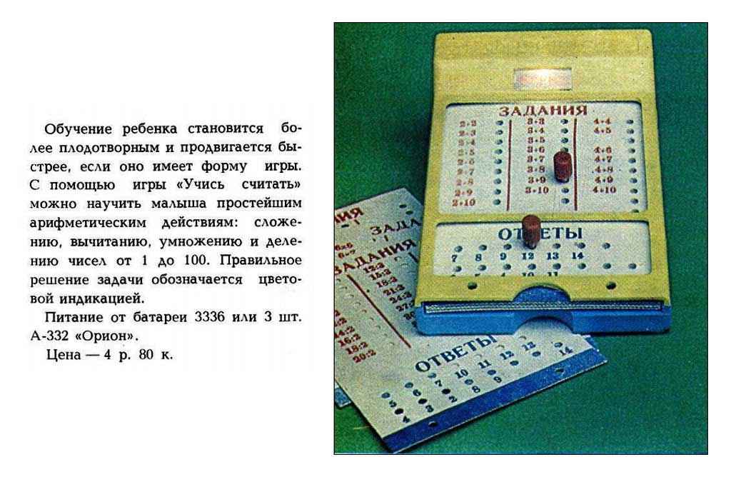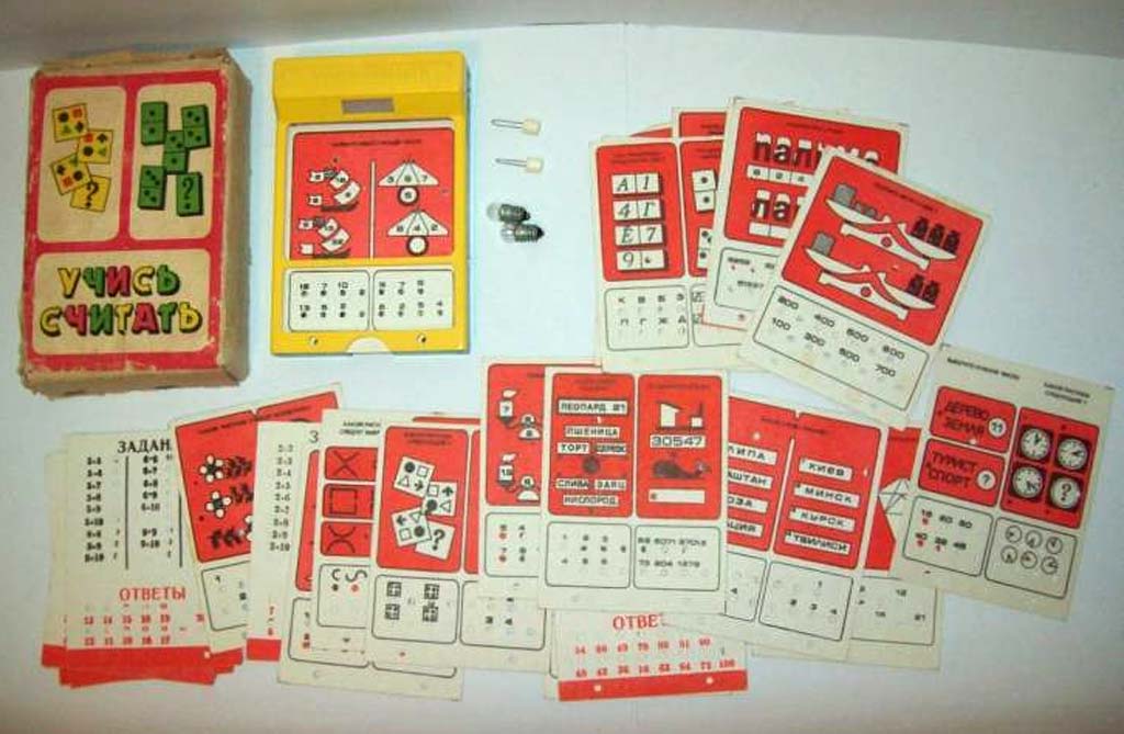 Игра "Учись считать" производилась предположительно с 1983 года Южным радиозаводом, города Жёлтые воды. Служит для детей дошкольного возраста и обучает всем арифмитическим действиям от 1 до 100.