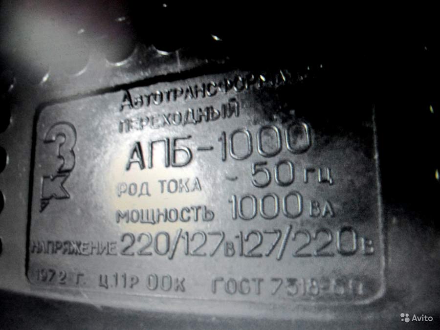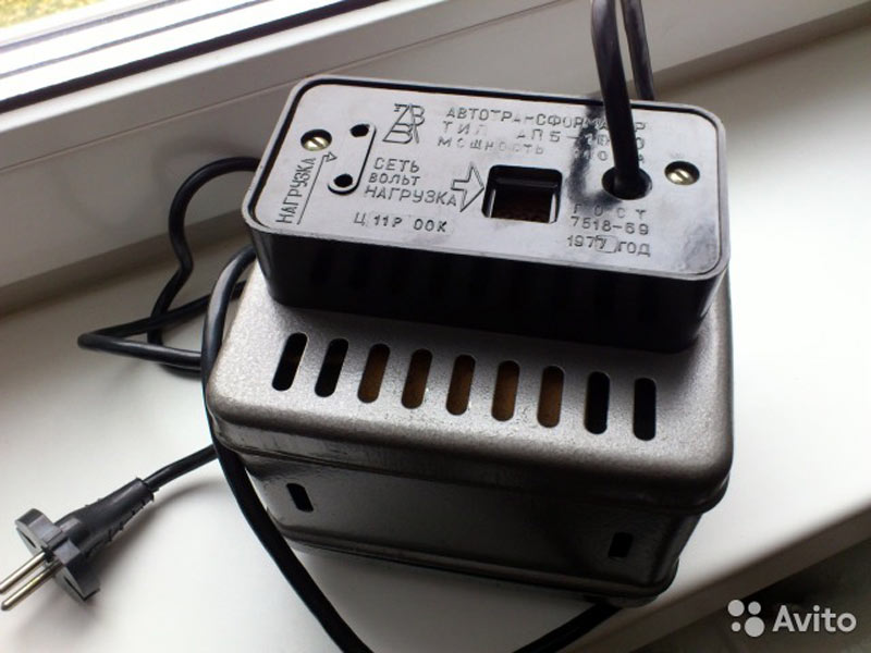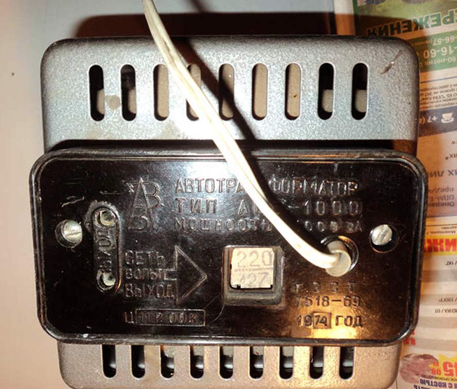 Автотрансформатор "АПБ-1000" выпускался с 1970 года. Для включения в сеть электроприборов с мощностью до 1000 Вт. Применяется при необходимости понижения напряжения с 220 до 127 вольт и наоборот.