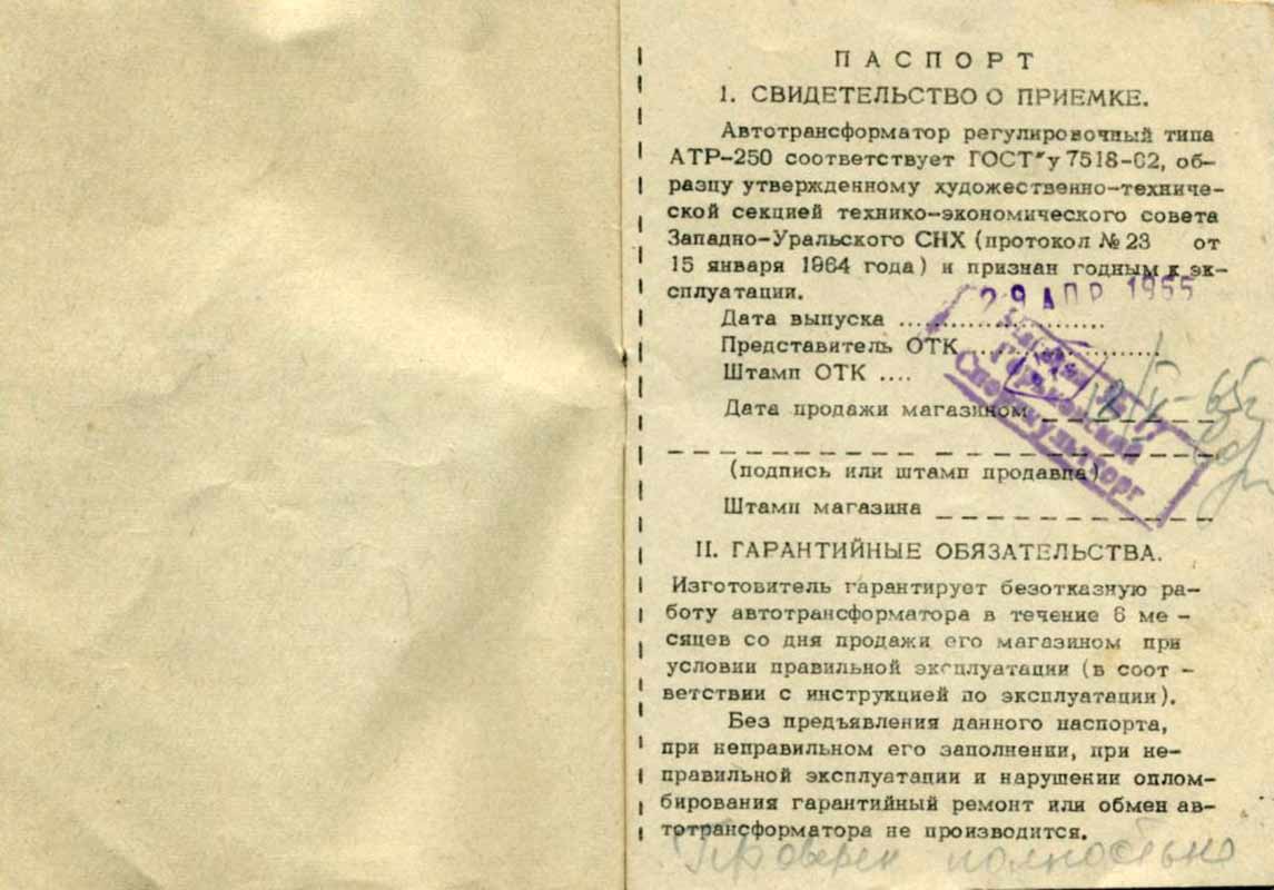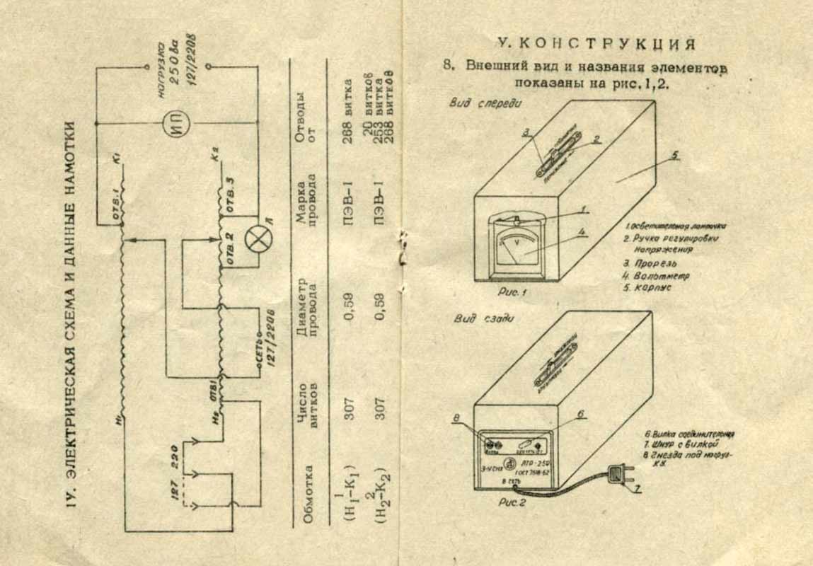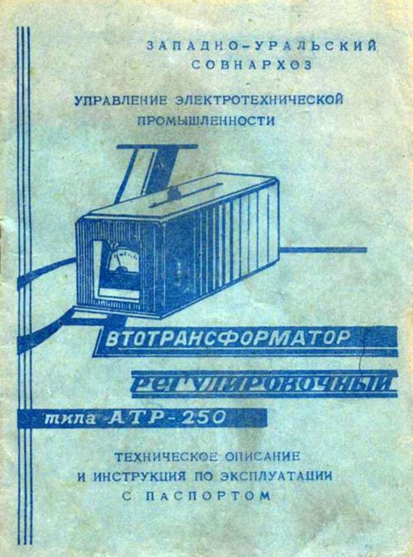 Автотрансформатор регулировочный "АТР-250" выпуска с 1965 года. Предназначен для ручного поддержания напряжения 127 или 220 В в нагрузке мощностью до 250 Вт.