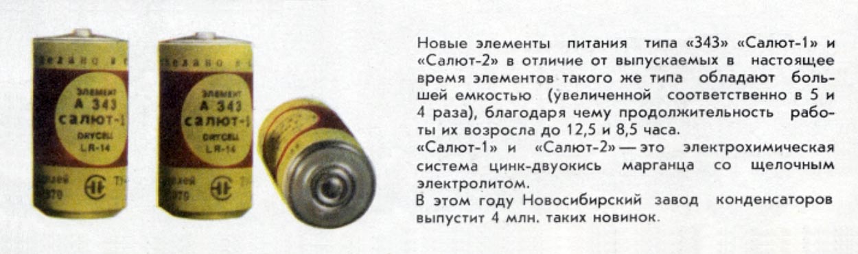 А343 "Салют-1" и "Салют-2" со щелочным электролитом выпускались с 1971