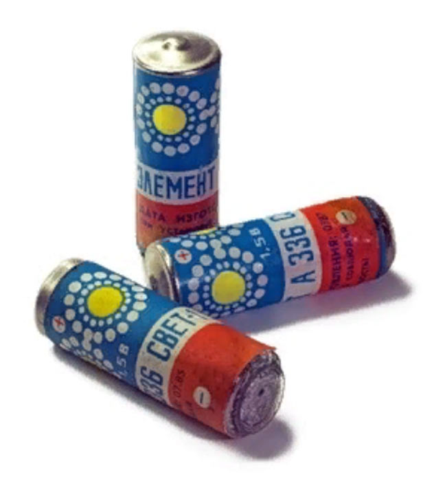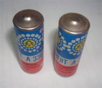 Елецким заводом сухих элементов. Диаметр 20 мм. Высота 58 мм. Масса 45