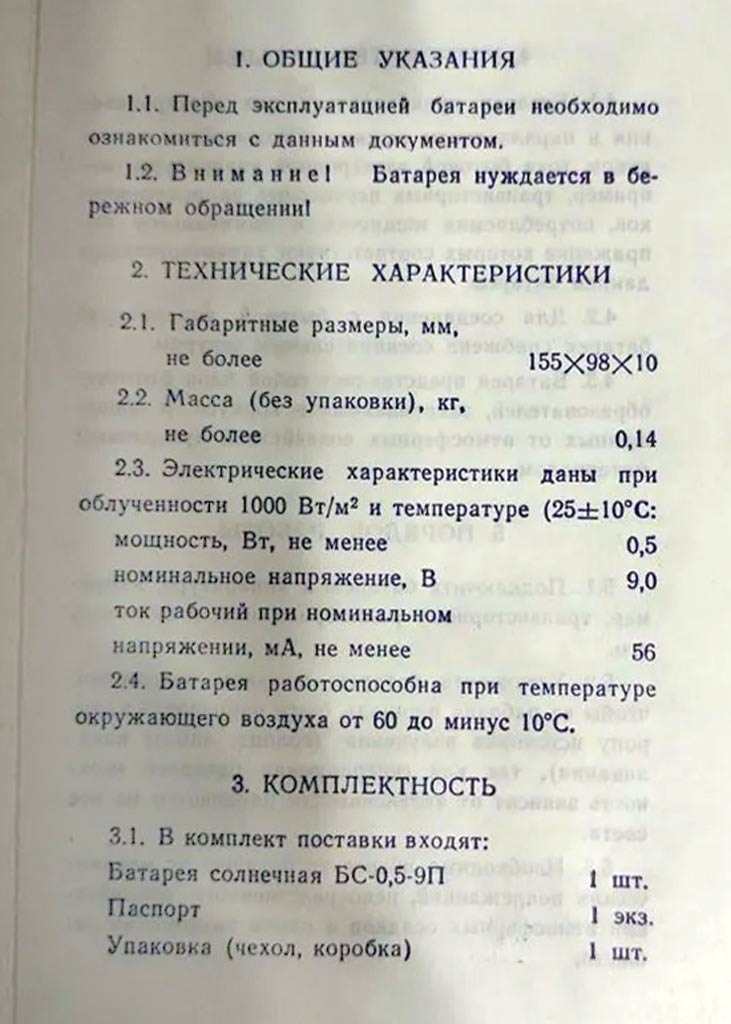 Батарея солнечная "БС-0,5-9/П" выпускалась