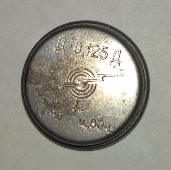 Напряжение 1,25 В. Ёмкость 0,125 А/ч. Диаметр 20 мм. Высота 6,6 мм. Масса