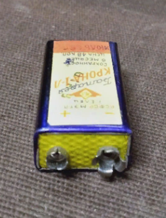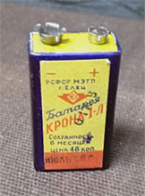заводом. Напряжение батареи 9 В. Ёмкость 0,1 А/ч. Габариты 16 х 26 х 49