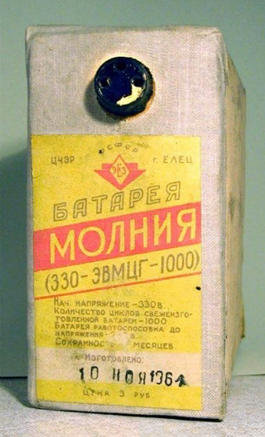 батареи 120х62х132 мм. Её масса 1,4 кг. Цена 3 рубля после денежной реформы