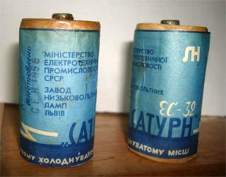Элемент гальванический "Сатурн" ЕС-32 выпускался предположительно с 1956 года Львовским заводом низковольтных ламп.