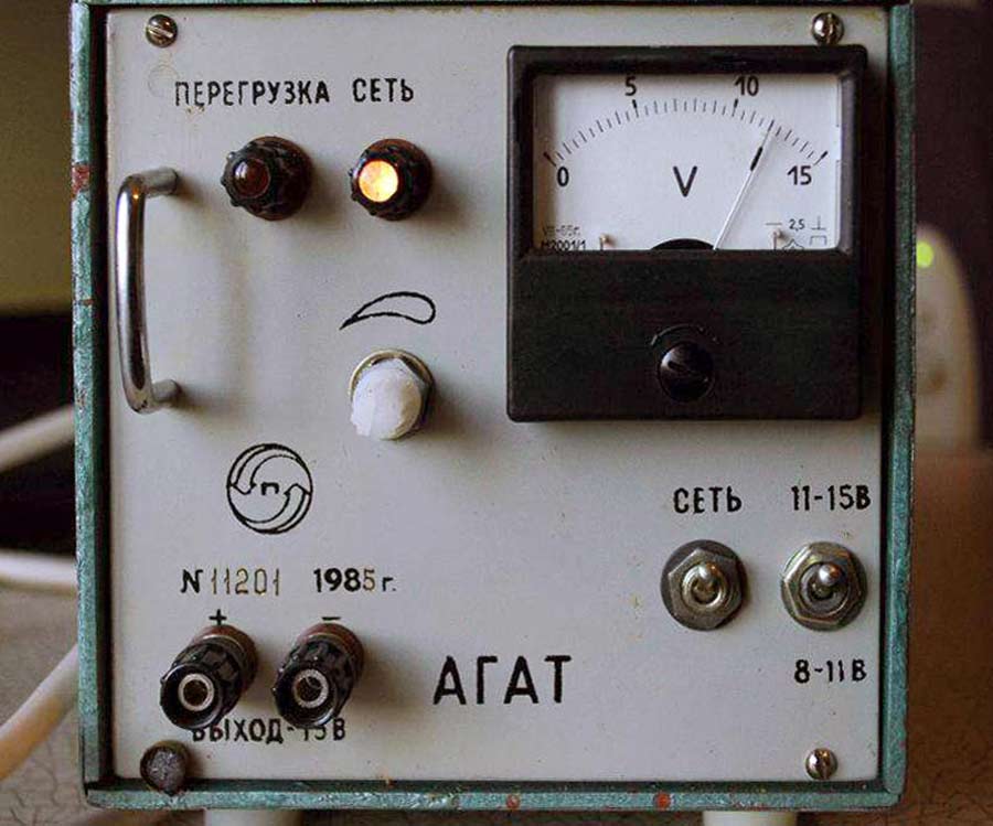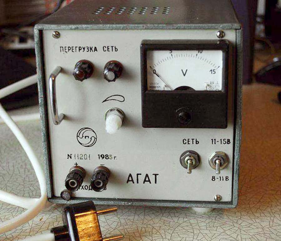 Регулируемый прибор питания "Агат" выпускался с 1978 года. Предназначен для получения регулируемого стабилизированного напряжения от 8 до 15 В. Прибор имеет электронную защиту от КЗ с индикацией.