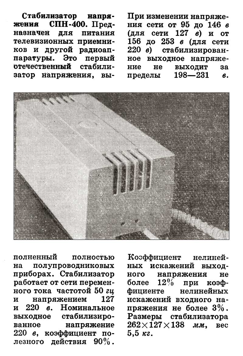 стабилизатор напряжения "СПН-400" выпускался с начала 1971 года Саранским