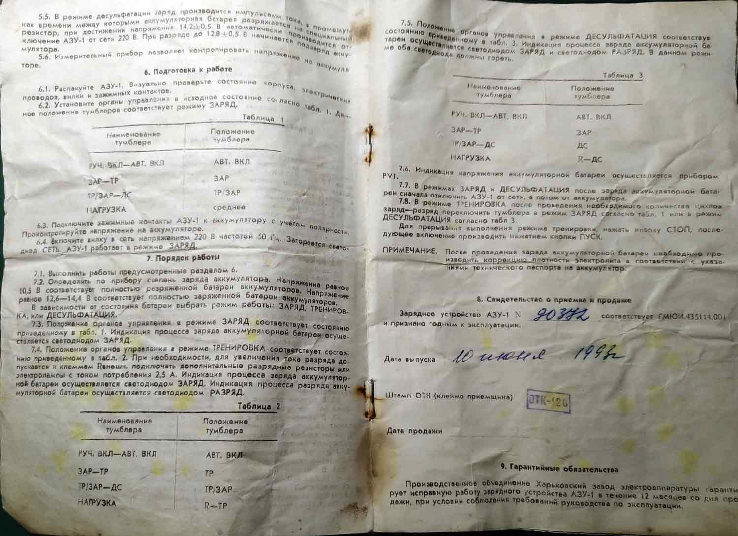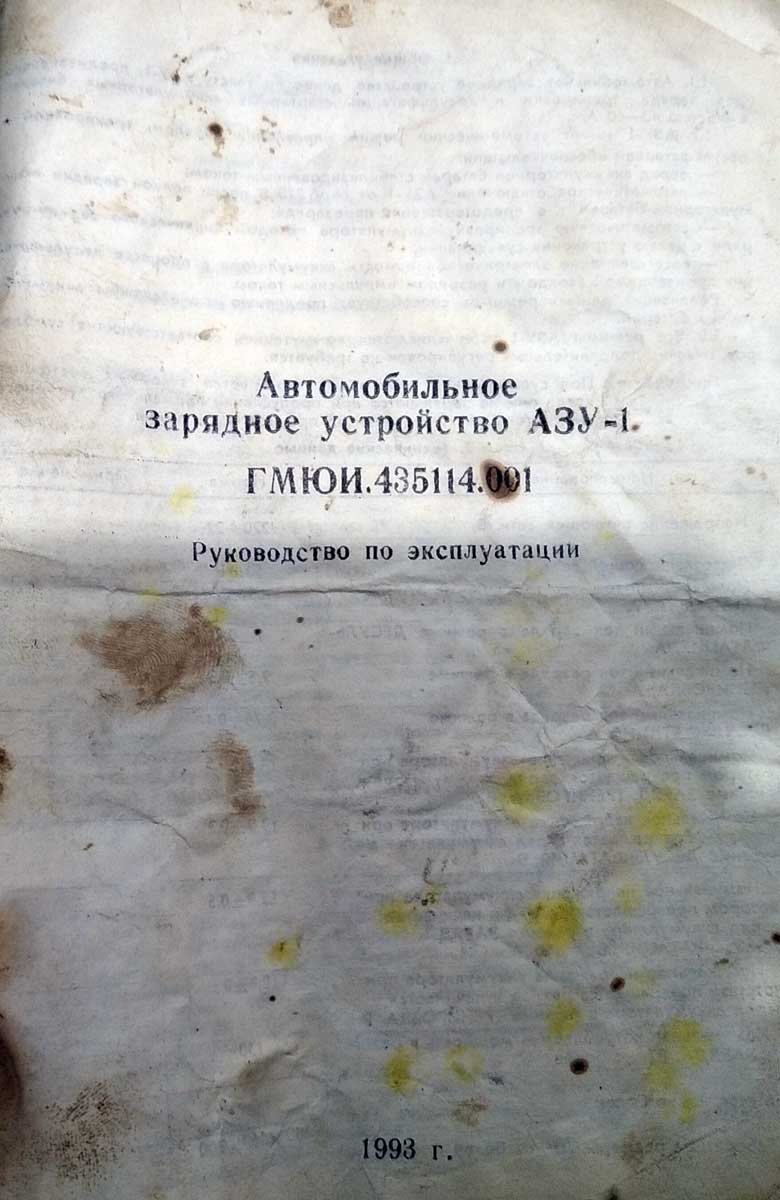 инструкцию зарядного устройства "АЗУ-1" предоставил Игорь Ляхов.
