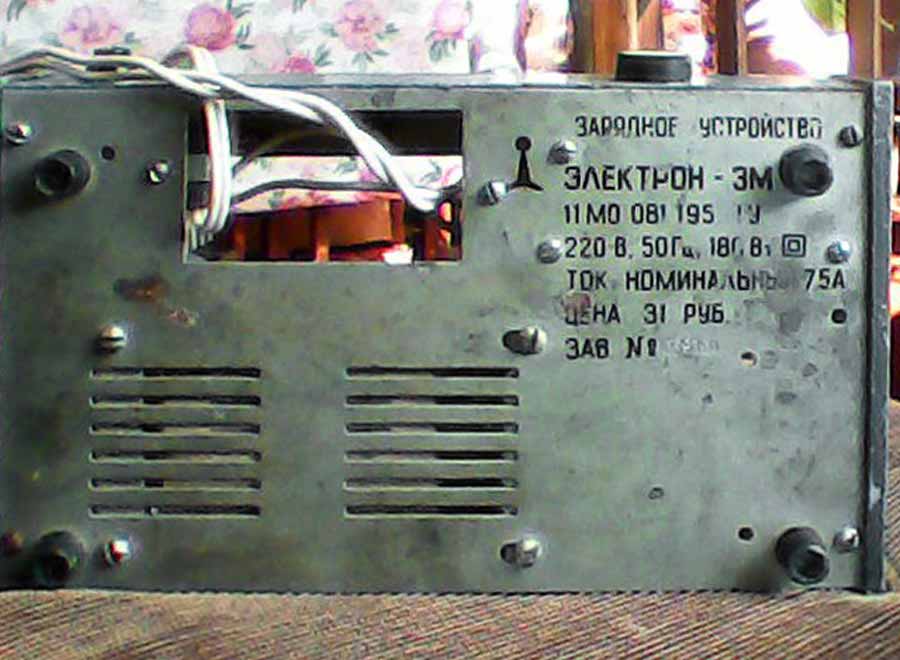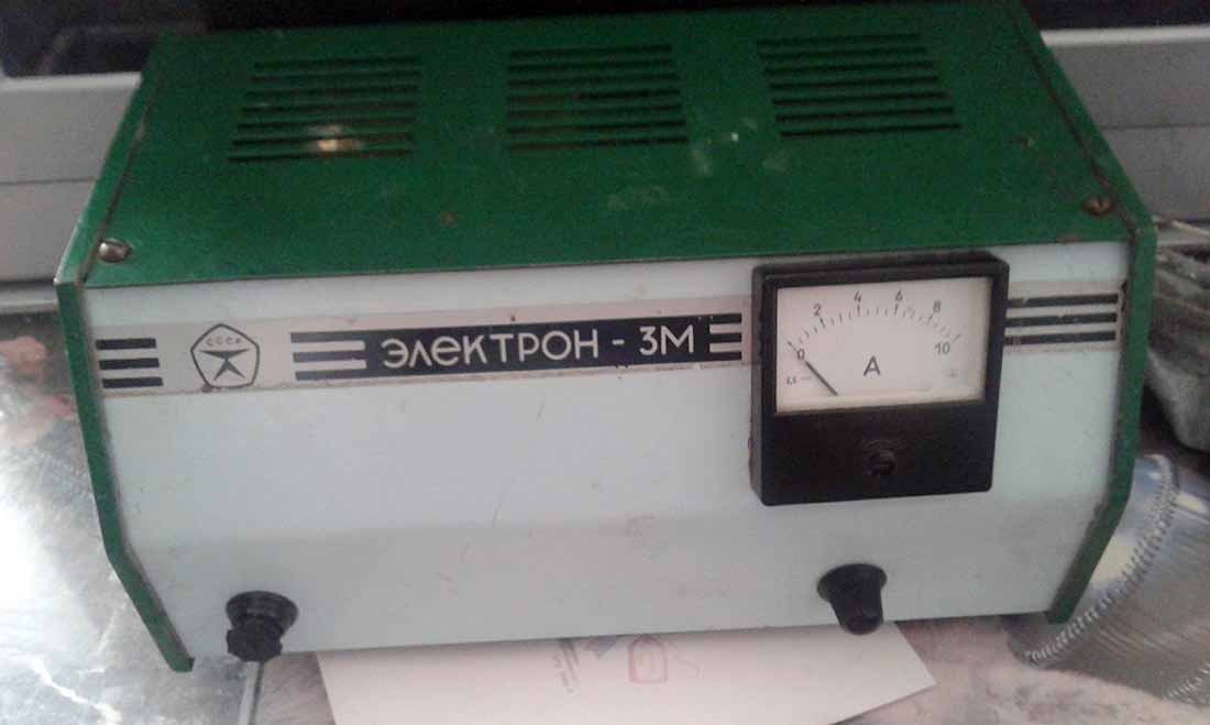 Зарядное устройство "Электрон-3М" выпускалось предположительно с 1979 года. Изготовитель не установлен. Зарядное устройство предназначено для зарядки автомобильных и мотоциклетных аккумуляторов.