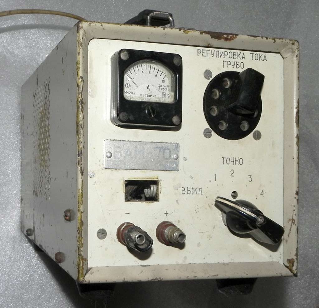 Переносной выпрямитель "ВАМ-70" выпускался с 1971 года. Предназначен для зарядки автомобильных и мотоциклетных аккумуляторов напряжением 6 и 12 В.