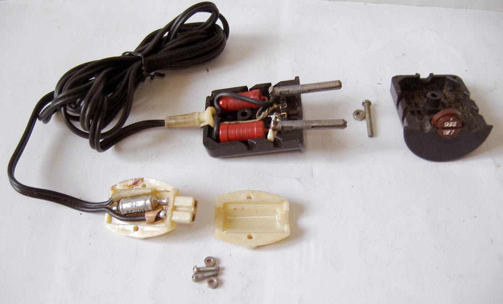 два гасящих резистора и выпрямительный диод. Аккумулятор находился под
