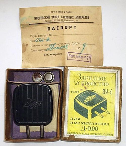 Зарядное устройство "ЗУ-1" с 1961 года выпускал Московский завод слуховых аппаратов. ЗУ предназначено для зарядки аккумуляторов диаметром 20 мм.